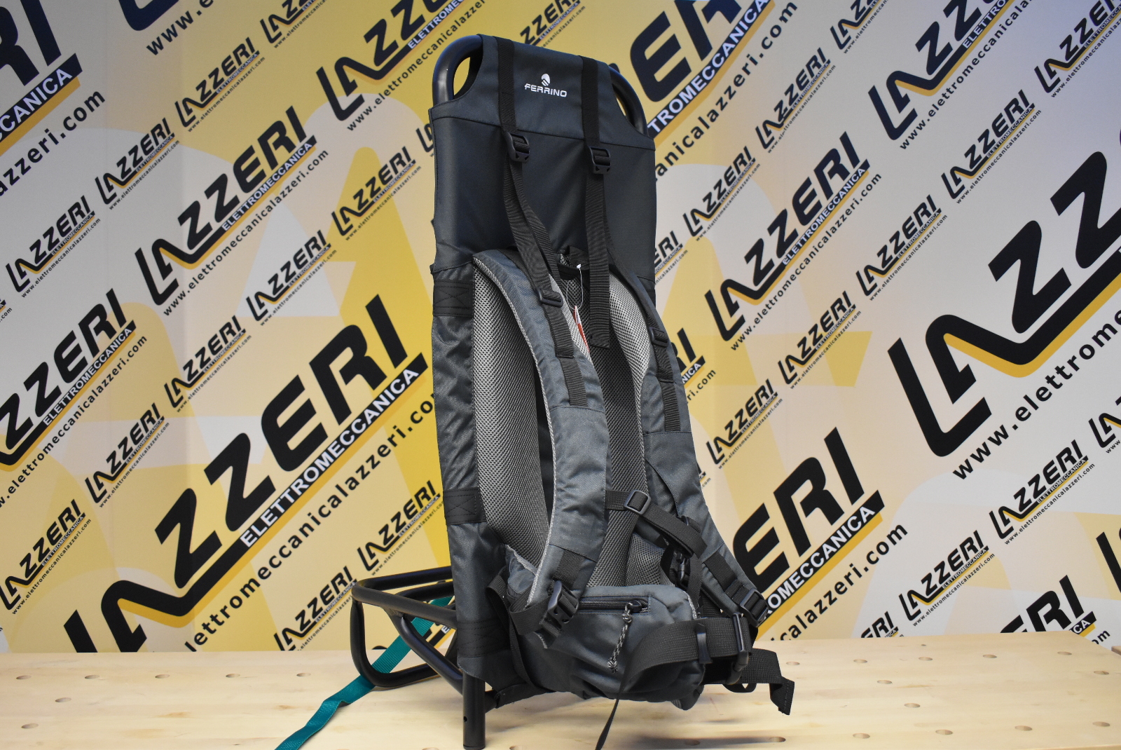 Robusta struttura in metallo con rivestimenti e protezioni della nota marca FERRINO leader nel settore degli zaini e dell'attrezzatura per la montagna