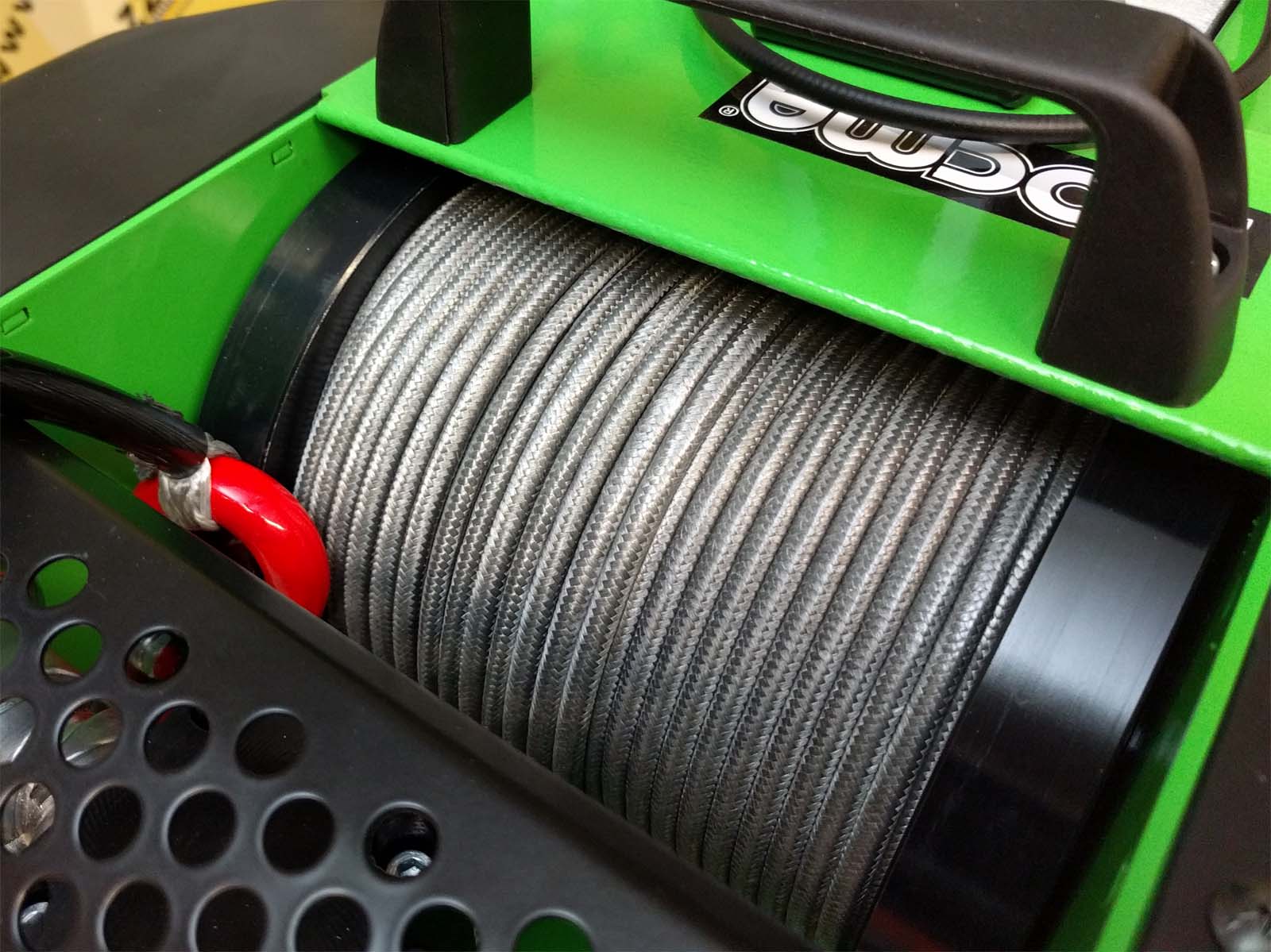 La grande novità del Verricello DOCMA VF 155Automatic della gamma Forestwinch sta nella sua fune tessile ad alta resistenza che oltre ad offrire un peso decisamente contenuto risulta anche piu resistente all’abrasione, e migliora moltissimo l’avvolgimento sul suo tamburo