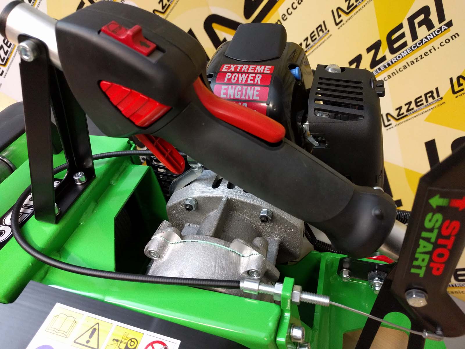 I comandi risultano semplici e di facile accesso, dall’impugnatura centrale si agisce sull’acceleratore in combinazione con la leva di sicurezza (freno meccanico campana frizione), in bella vista c’è anche l’interruttore di spegnimento