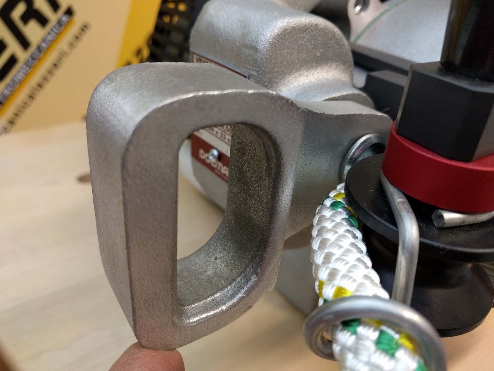 | Dotazione | Fune alta tenacità 100 mt da Ø 10mm, carrucola di rinvio, grillo, fascia ancoraggio con cricchetto e braca ad anello 4mt 20q.li |