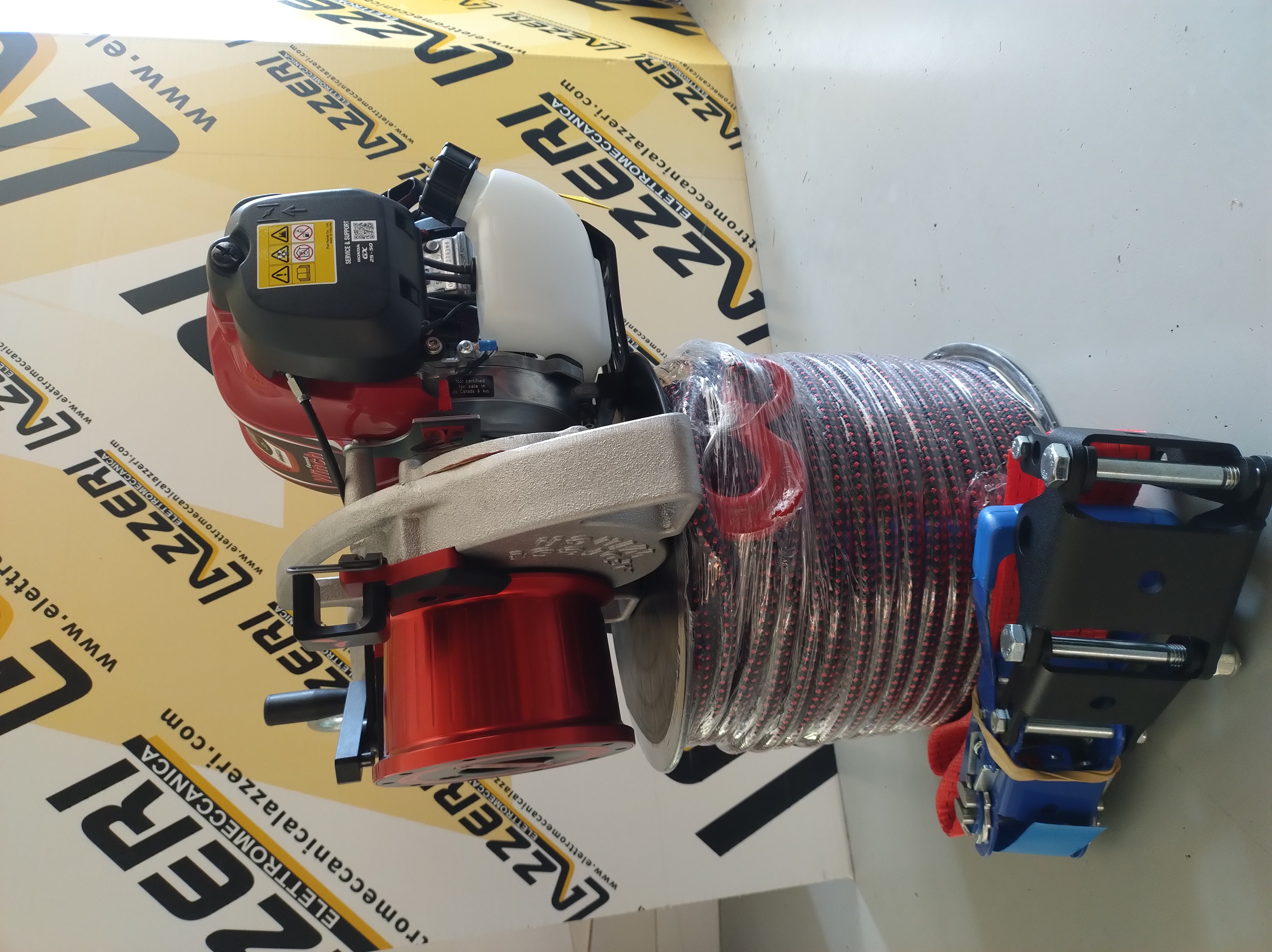 Questo verricello è alimentato da un un motore Honda GXH-50 cc a 4 tempi. Ha un peso di 16 kg e sviluppa 1000 kg di forza di trazione con tiro diretto. Ideale per le applicazioni forestali data la sua straordinaria potenza e le due opzioni di velocità, grazie ai tamburi di tiro intercambiabili.