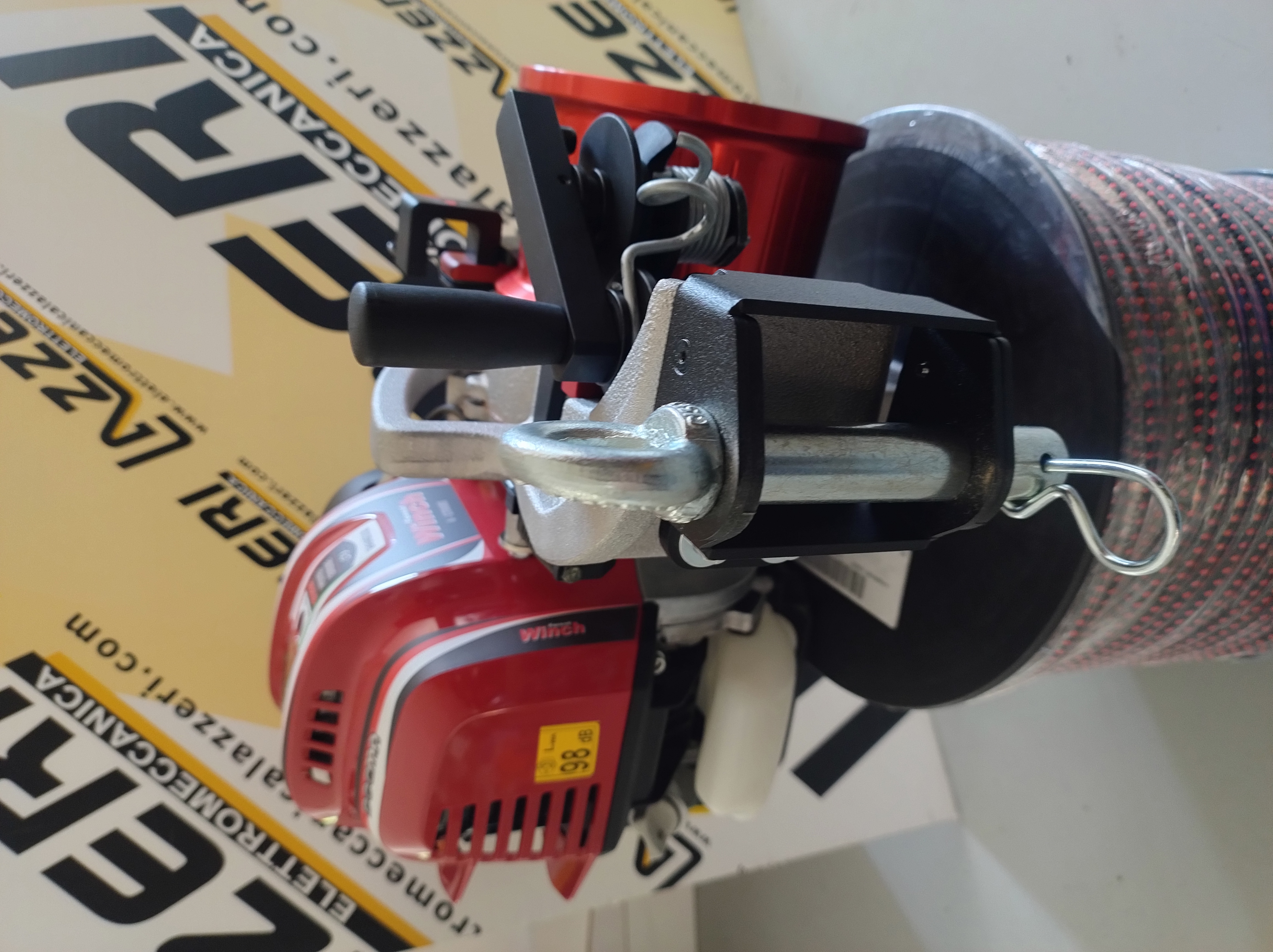 Verricello Forestale DOCMA VF105 RED IRON, completo di 100mt. di fune tessile Ø10mm alta tenacità doppia treccia rossa (1700Kg) e gancio con sicura